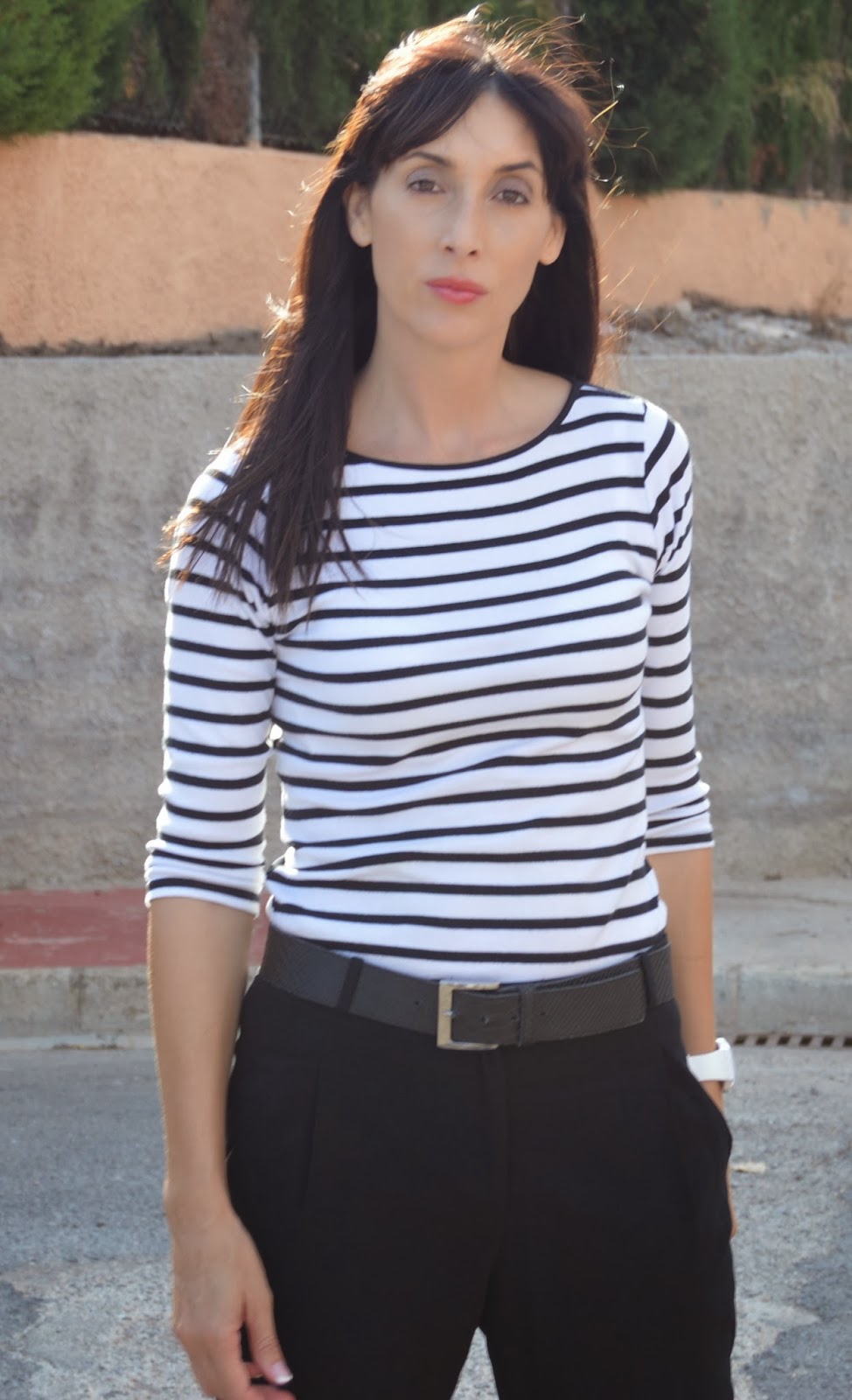 Yo lo he combinado con esta camiseta básica, también de ZARA, de media manga para no tener que llevar tantas prendas a cuestas. Aquí en Valencia el tiempo es más que bueno pero por la mañana y por la noche hace fresquito.