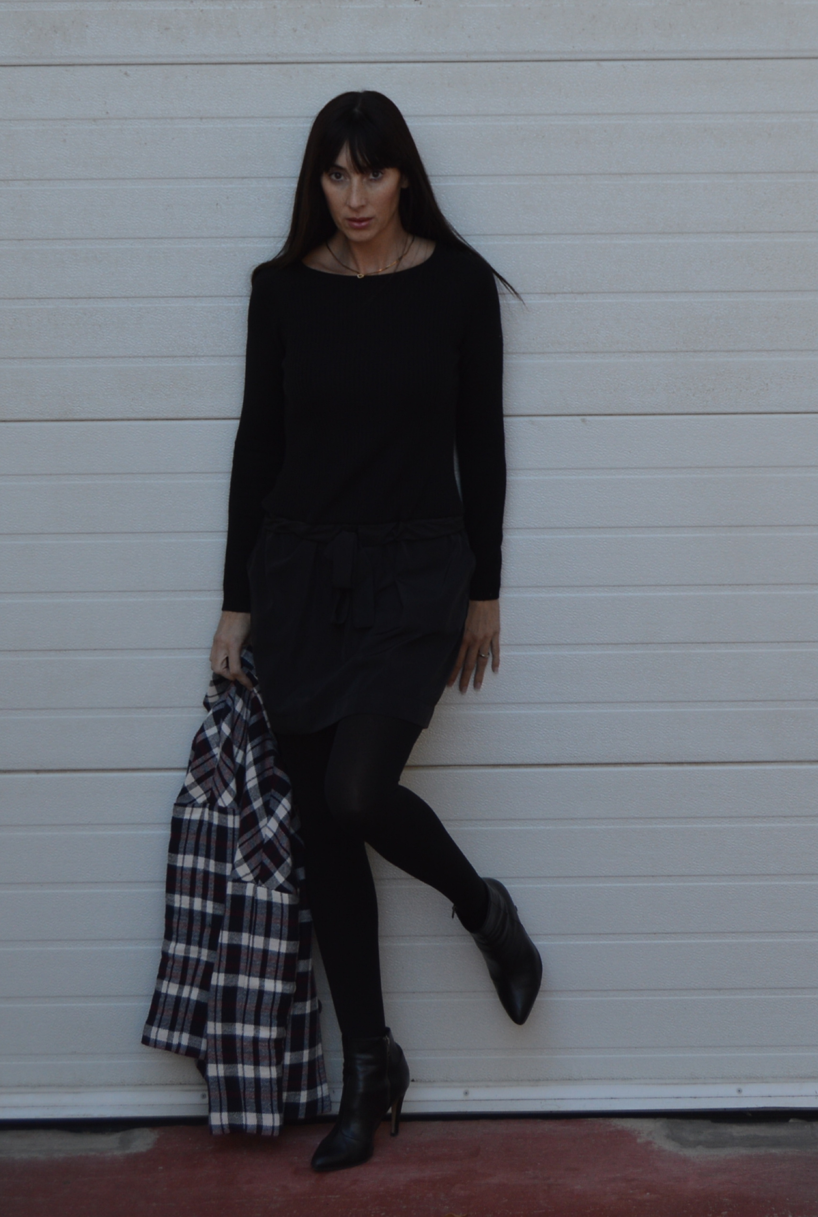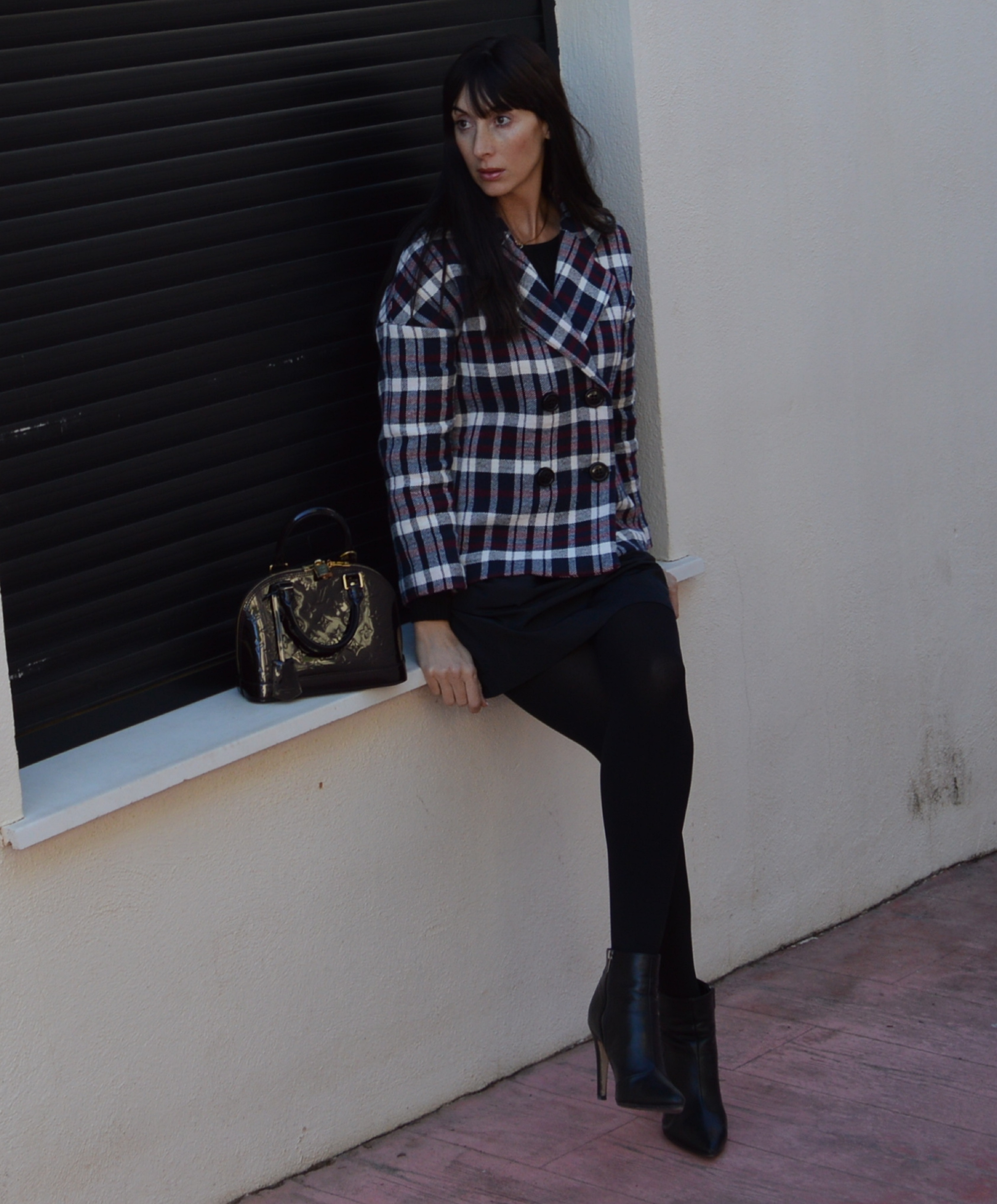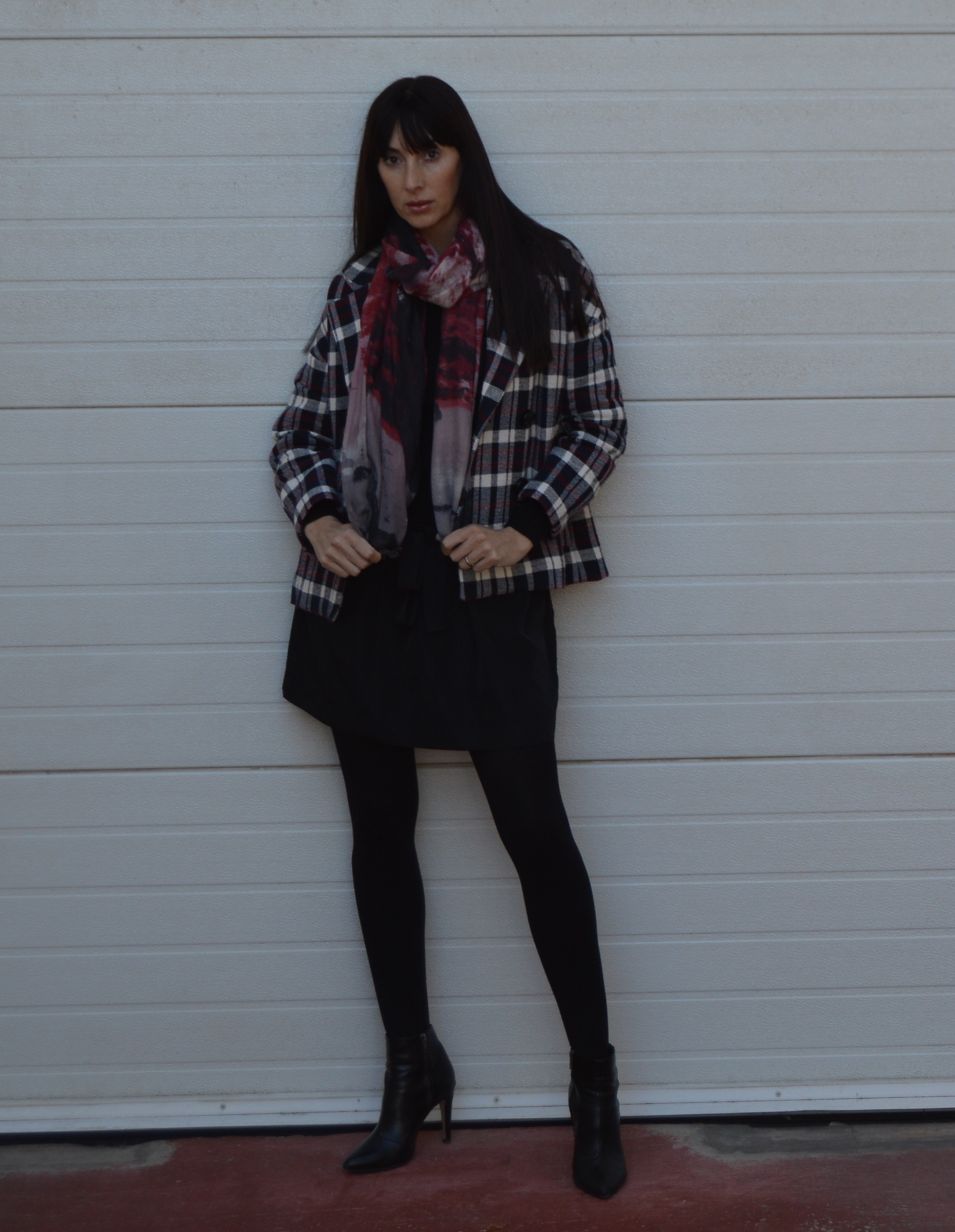 Yo, hoy, he escogido esta combinación: vestido negro con botines, así la protagonista absoluta del look era la chaqueta.