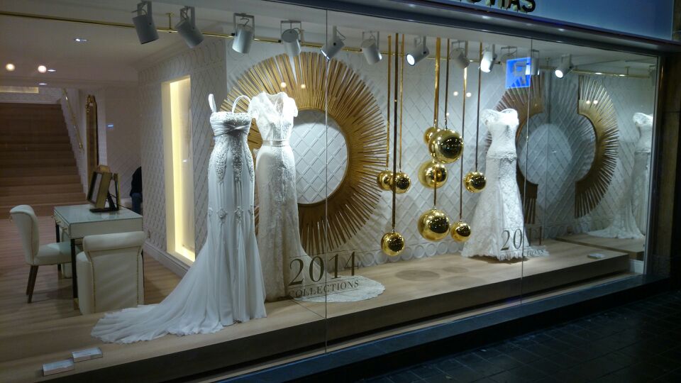 El nuevo concepto de tienda de la firma ha contado con la colaboración del prestigioso interiorista Lázaro Rosa-Violán, cuyos diseños se inspiran en el mundo oriental creando un espacio exótico, romántico y femenino. Fruto de su experiencia y su savoir faire, el interiorista ha dotado a las tiendas de elementos que evocan a un tiempo pasado, de lujo y glamour, donde la novia es el elemento principal alrededor del cual gira el mundo. Para ello se han utilizado diferentes recursos, como los damascos florales que reafirman la voluntad de entender a la novia como el centro del mundo, y el uso del dorado en detalles del mobiliario, a través del latón pulido, que le confiere a la marca un toque de distinción.