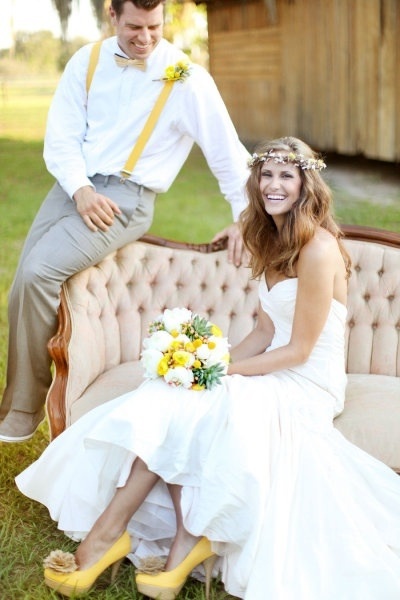 Pero esta combinación cromática no se limita a los espacios comunes salta al mundo de las celebraciones incluidas las bodas, ¿ te vas a casar? ¿usarías el amarillo en algún detalle de tu vestido? algunas chicas si lo han hecho… mira la foto.