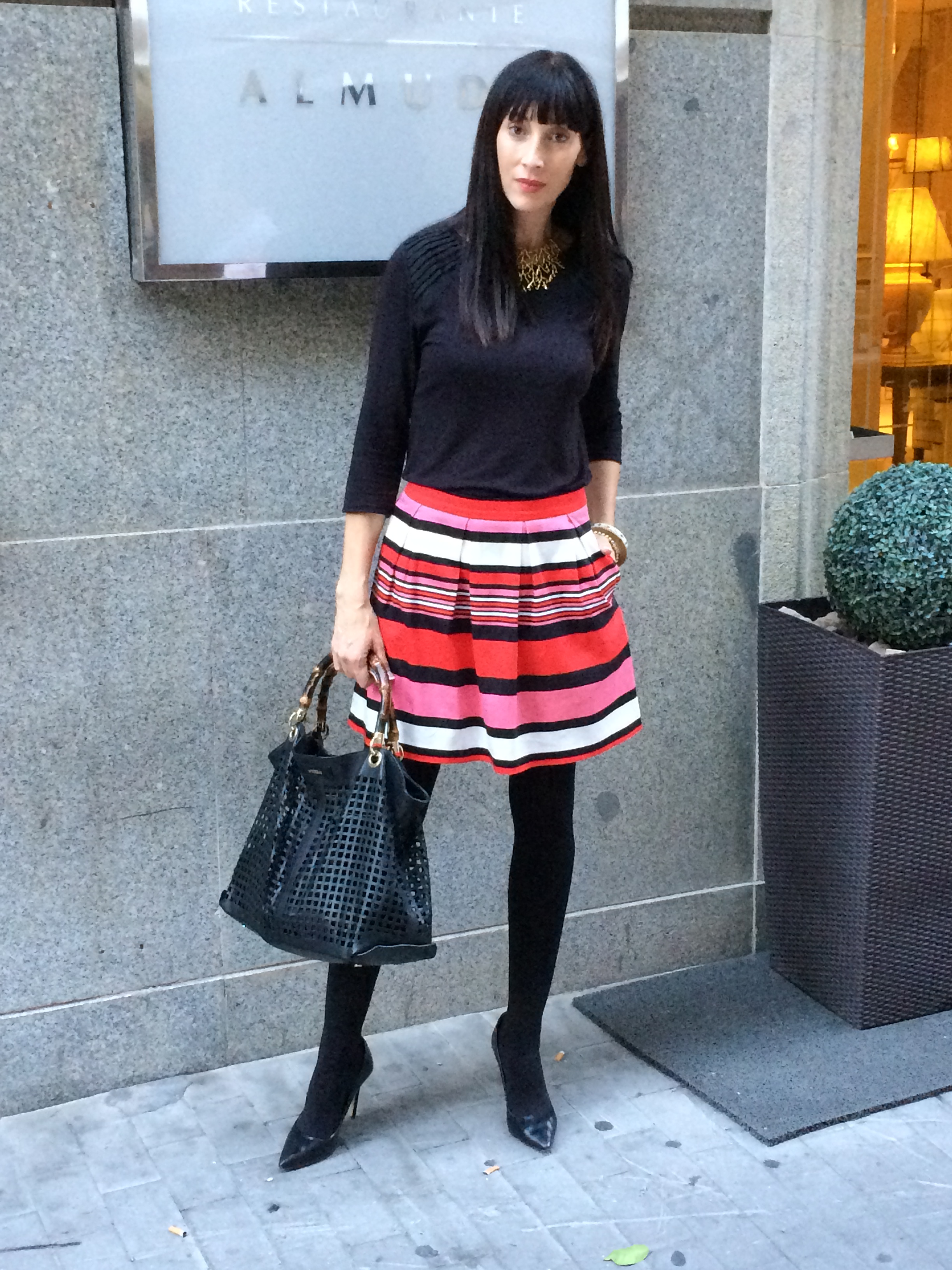 Hoy os traigo la misma falda en versión otoñal. Si alguien pensaba que no podía reciclar prendas durante todo el año… si se puede.