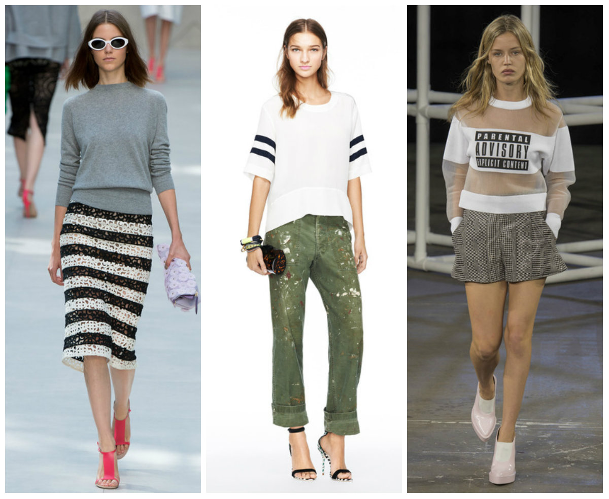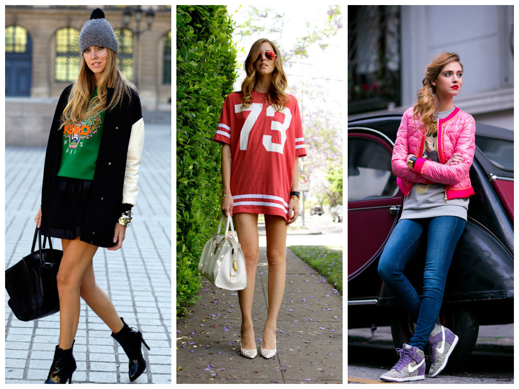 Bombers, prendas de neopreno, pantalones con puños en los bajos, shorts estilo boxeador, pantalones con tiras a los lados, camisetas con números, gorras de beisbol, sudaderas … cómbinalo con deportivas o incluso un tacón para darle ese toque chic y un blazer y ya hemos conseguido la imagen de tendencia.