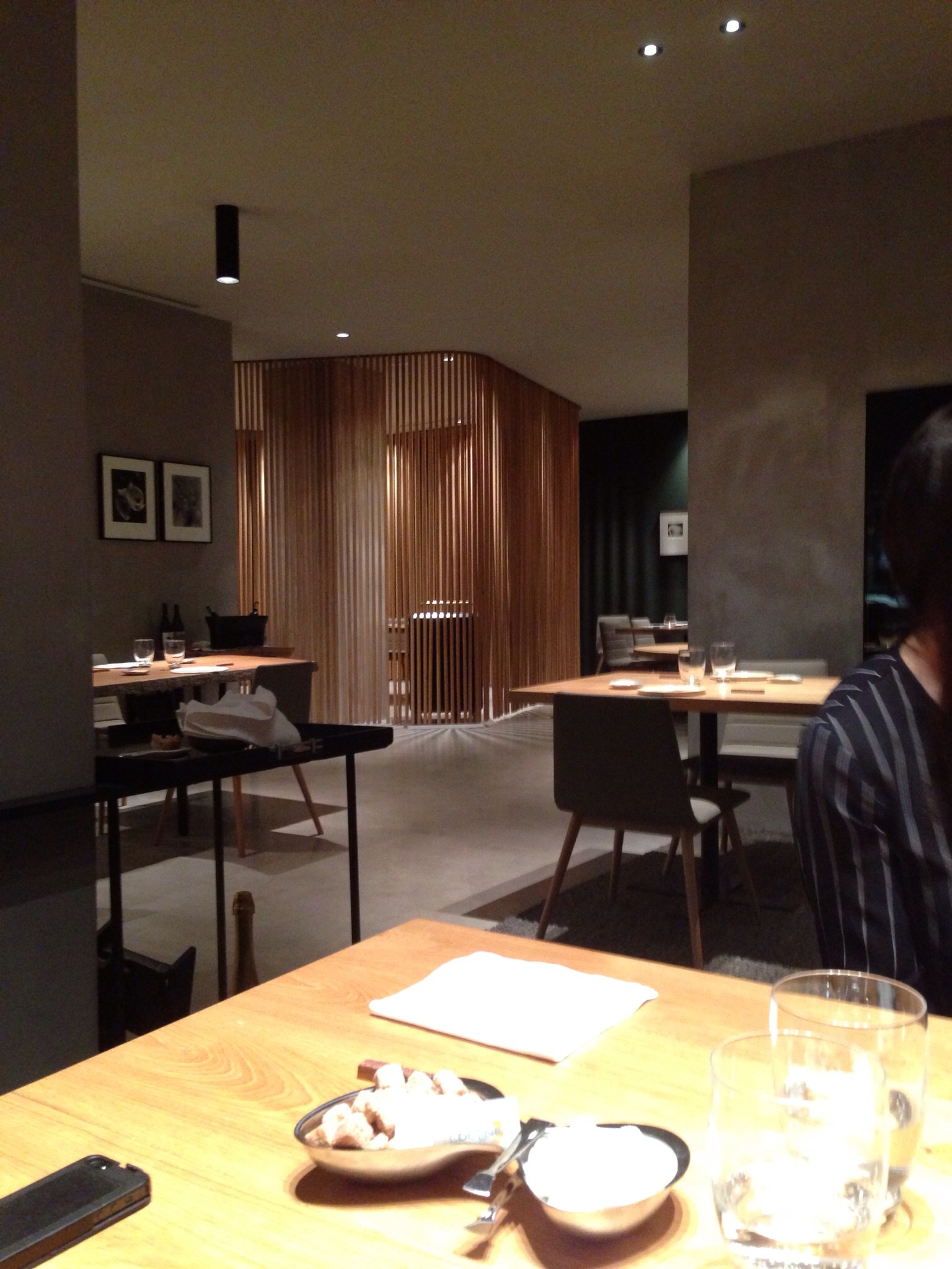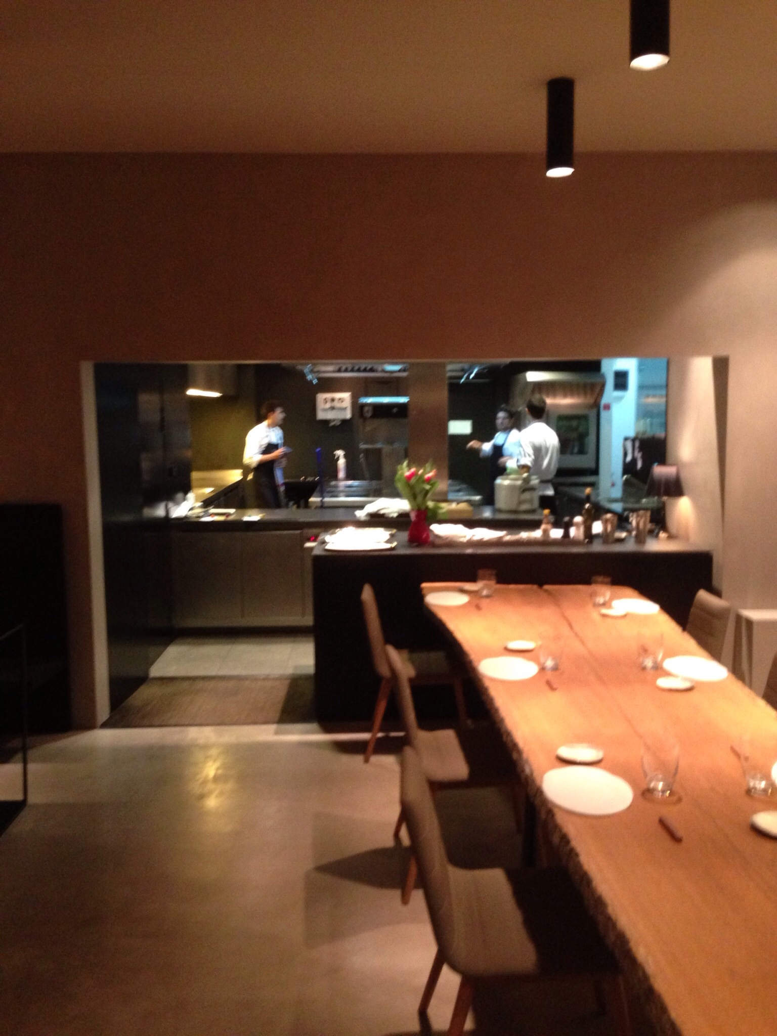 De líneas sencillas y depuradas, el restaurante te da una gran sensación de paz, a pesar de tener la cocina abierta al público, es como ver una gran televisión en directo. es un detalle que me encantó, ver como trabajan en una cocina de este nivel resulta siempre muy interesante.