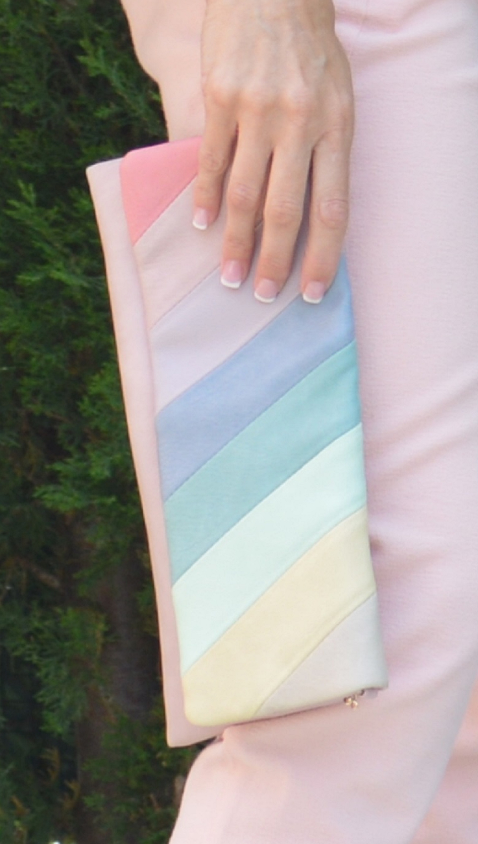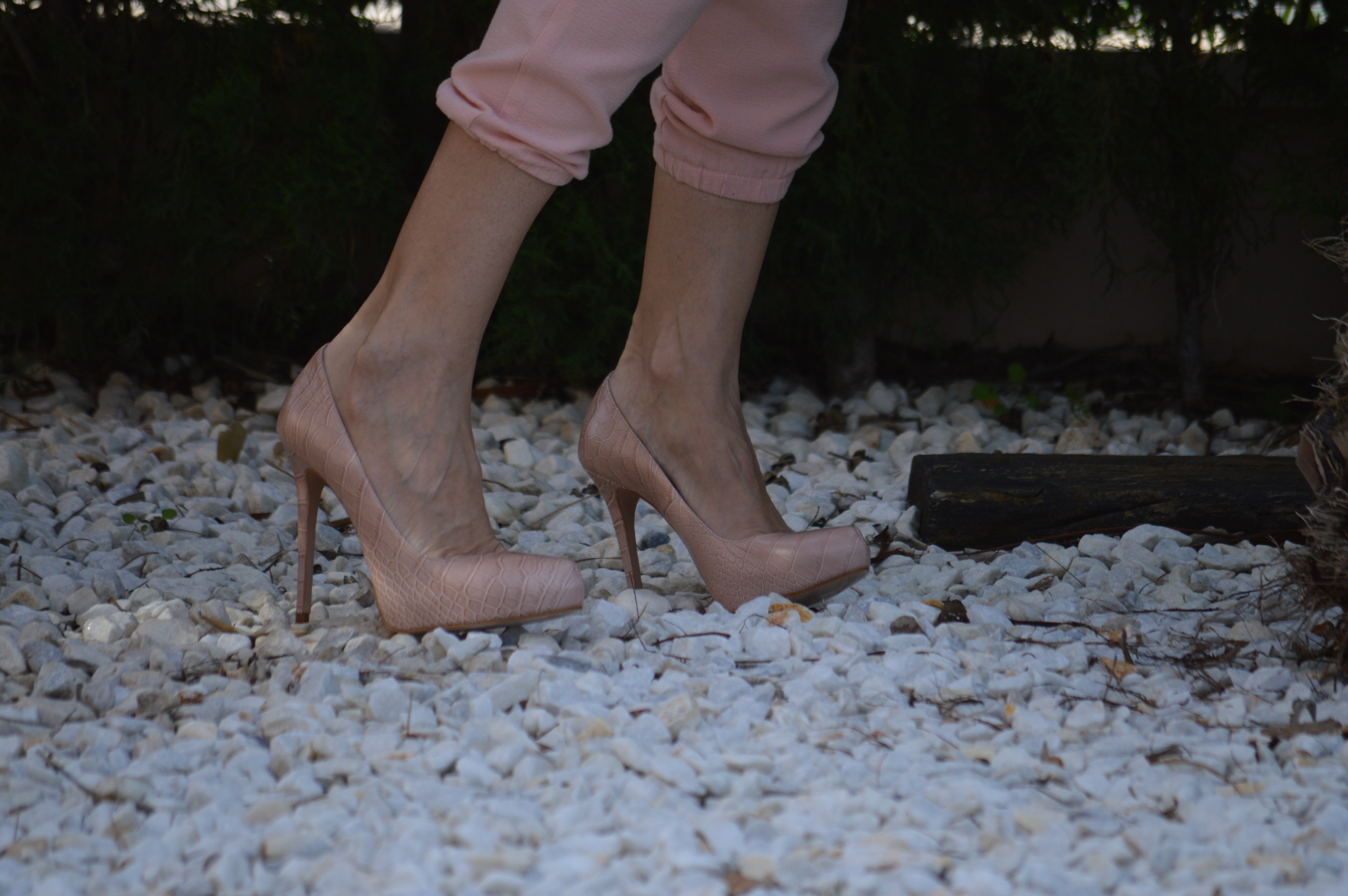 Los peeptoes en rosa y el clutch le dan un cierto toque de elegancia.