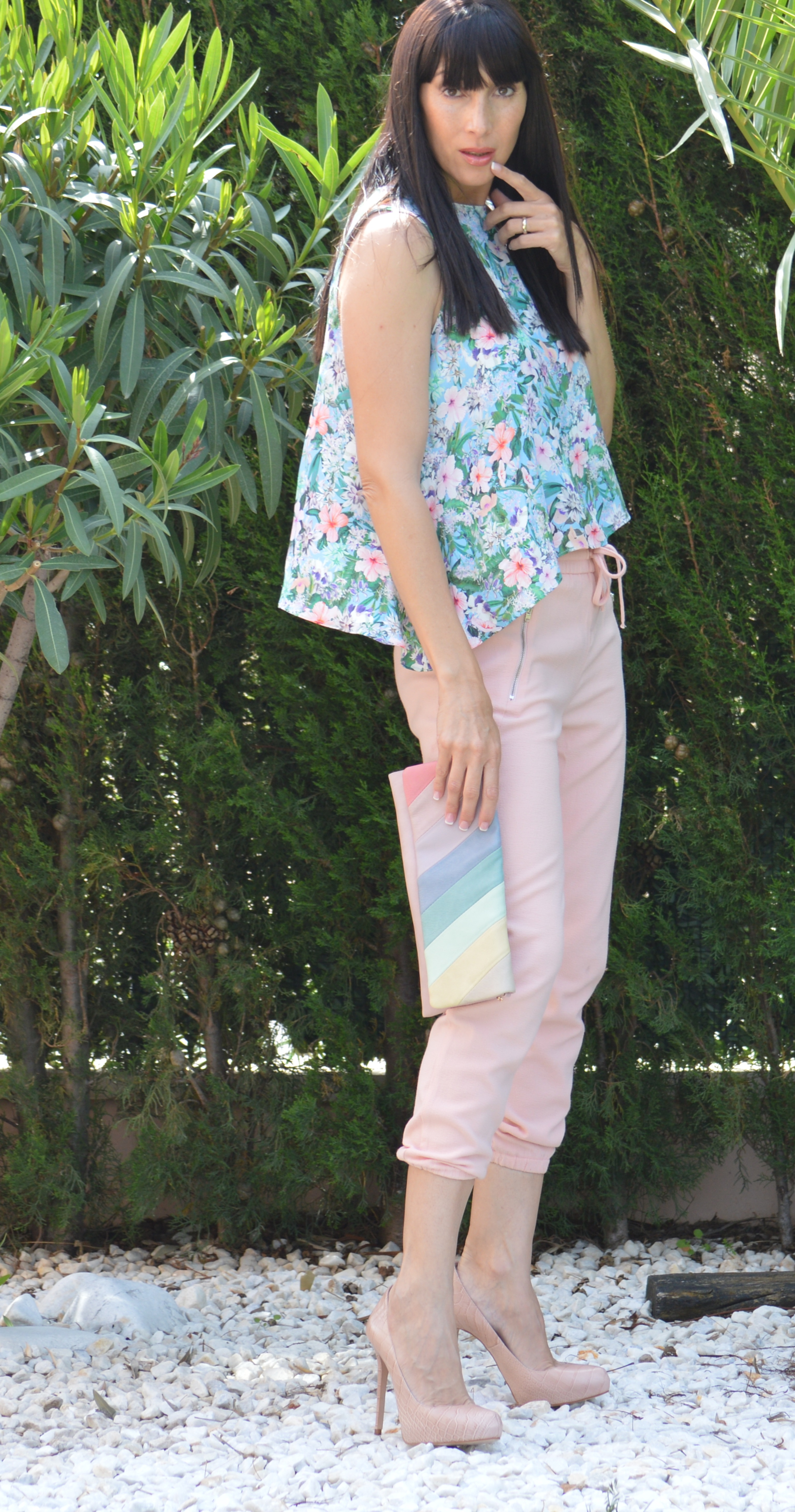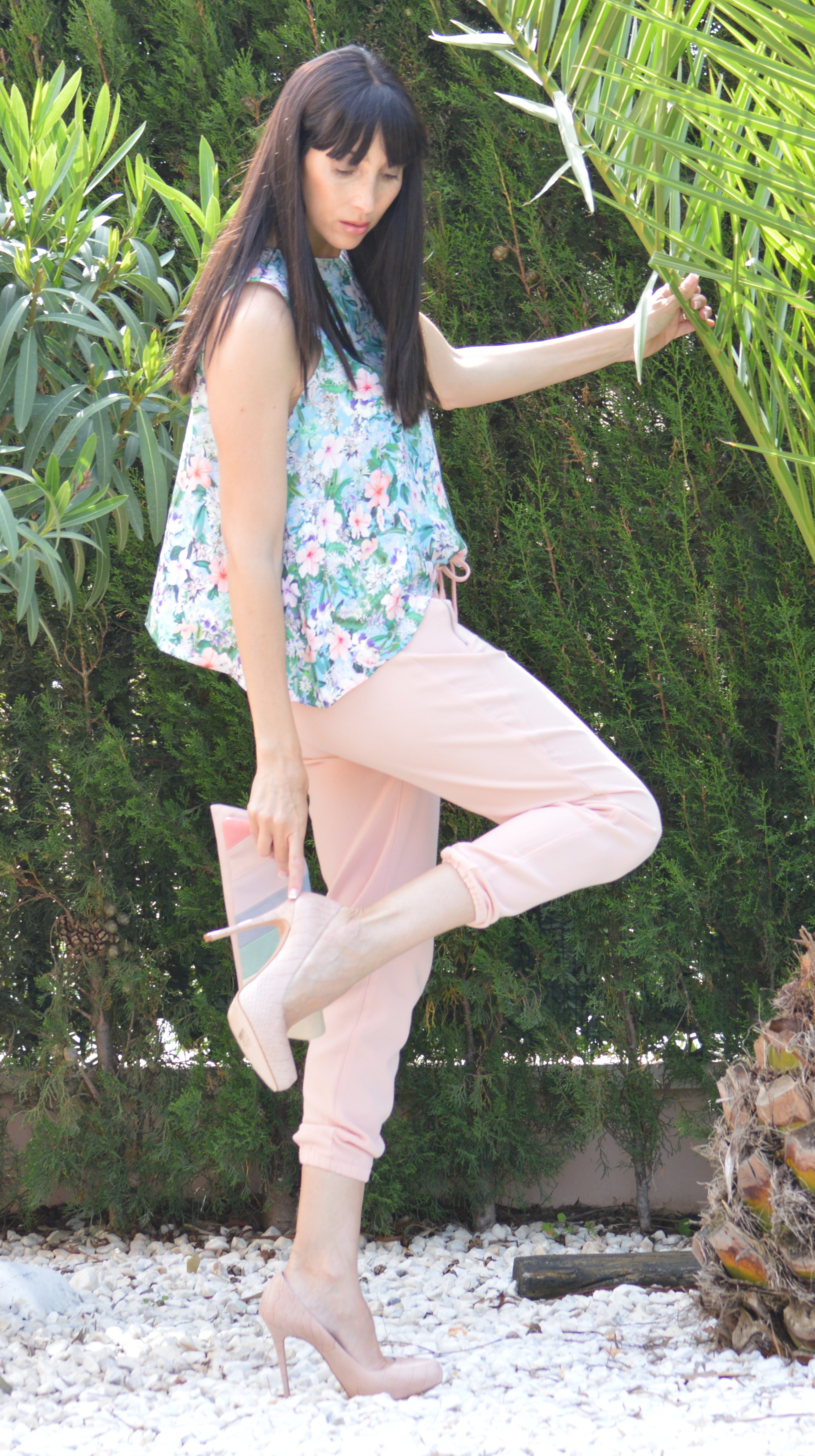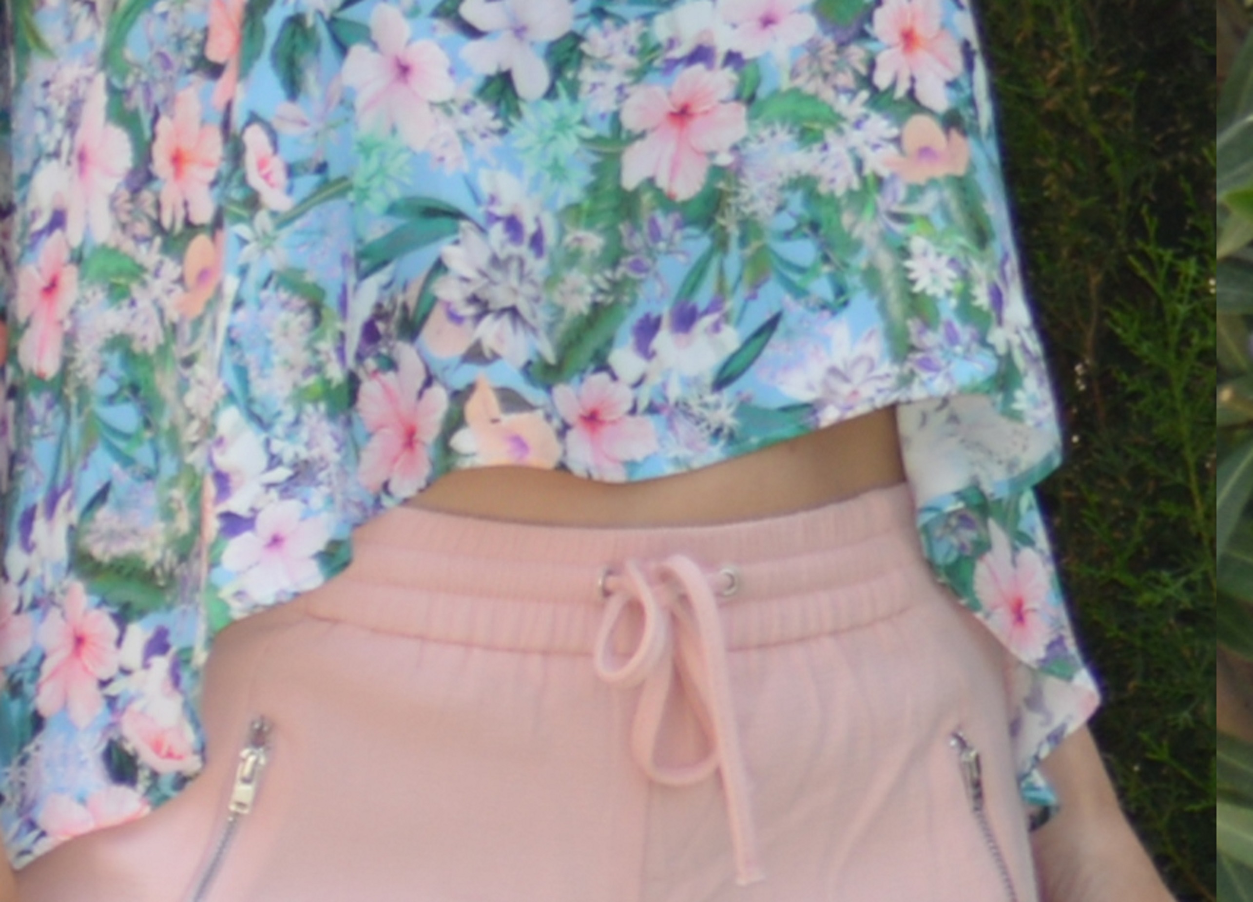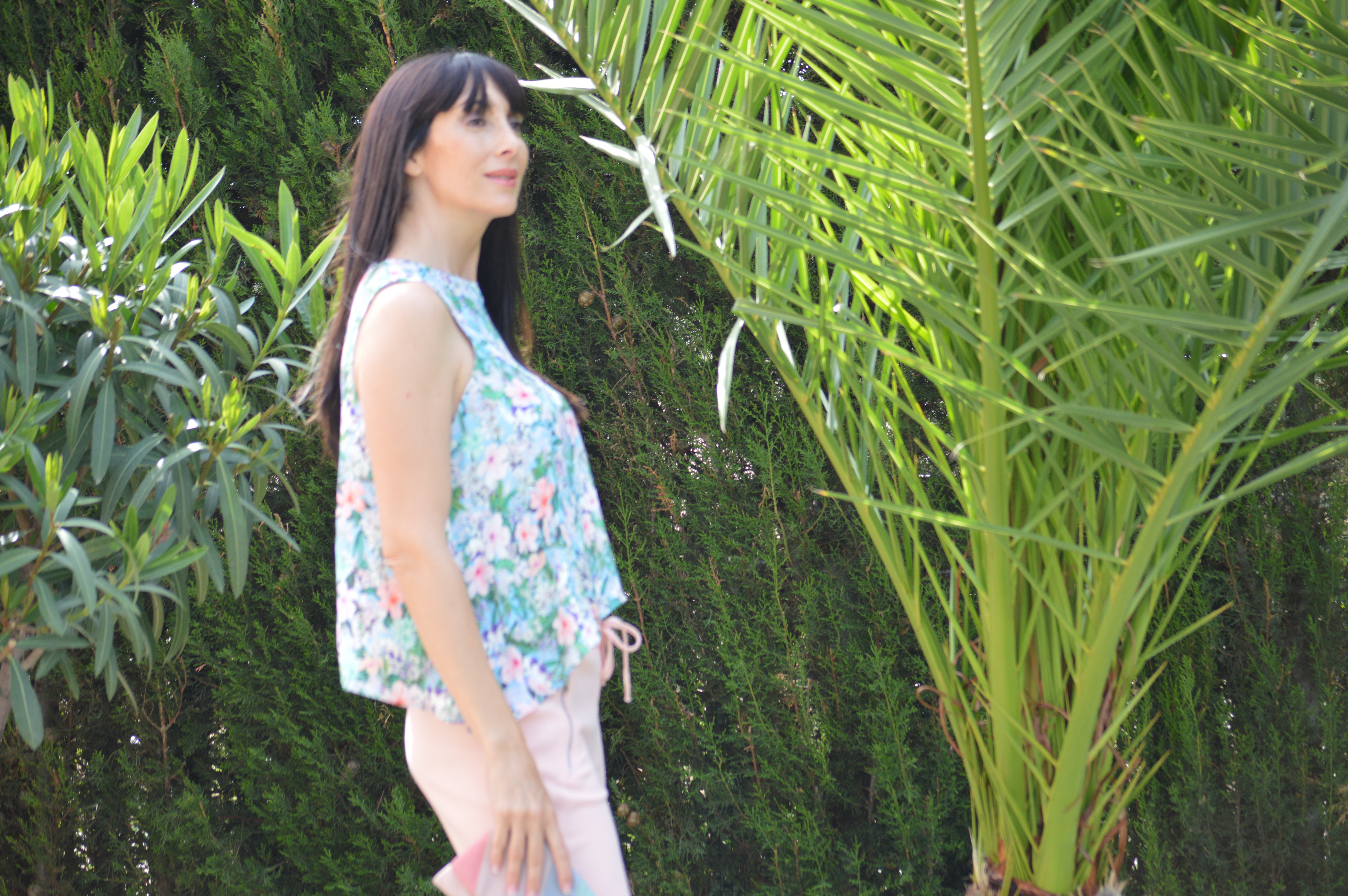 En mitad de tanto verde destacan las flores de este top que deja entrever el ombligo, que no suelo enseñar mucho.