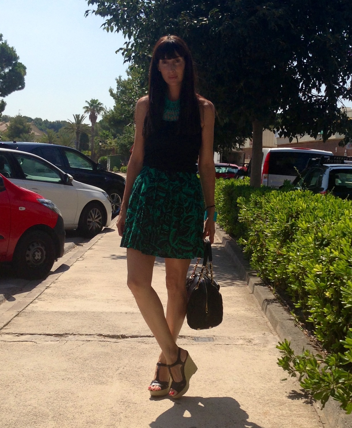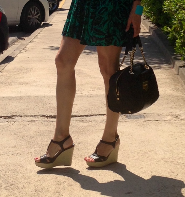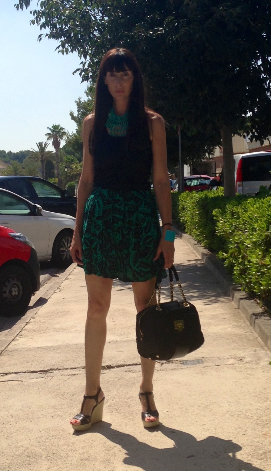 This skirt, bought at Stradivarius, caught my attention by the pattern quite discreet. Combined with the swimmer t give a casual touch. I love heels, stilettos but in summer the best change for wedges that keep the height but are much more comfortable.