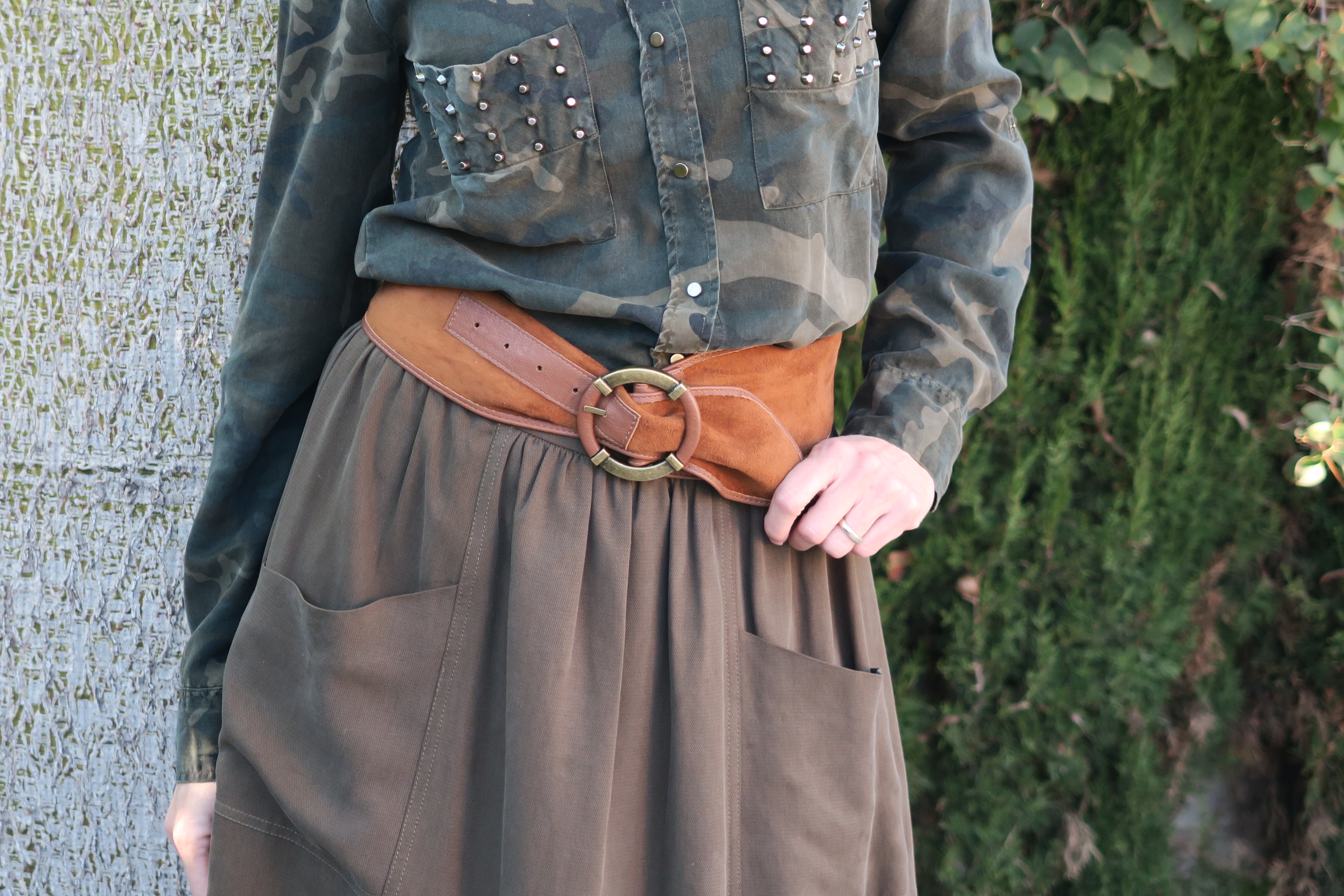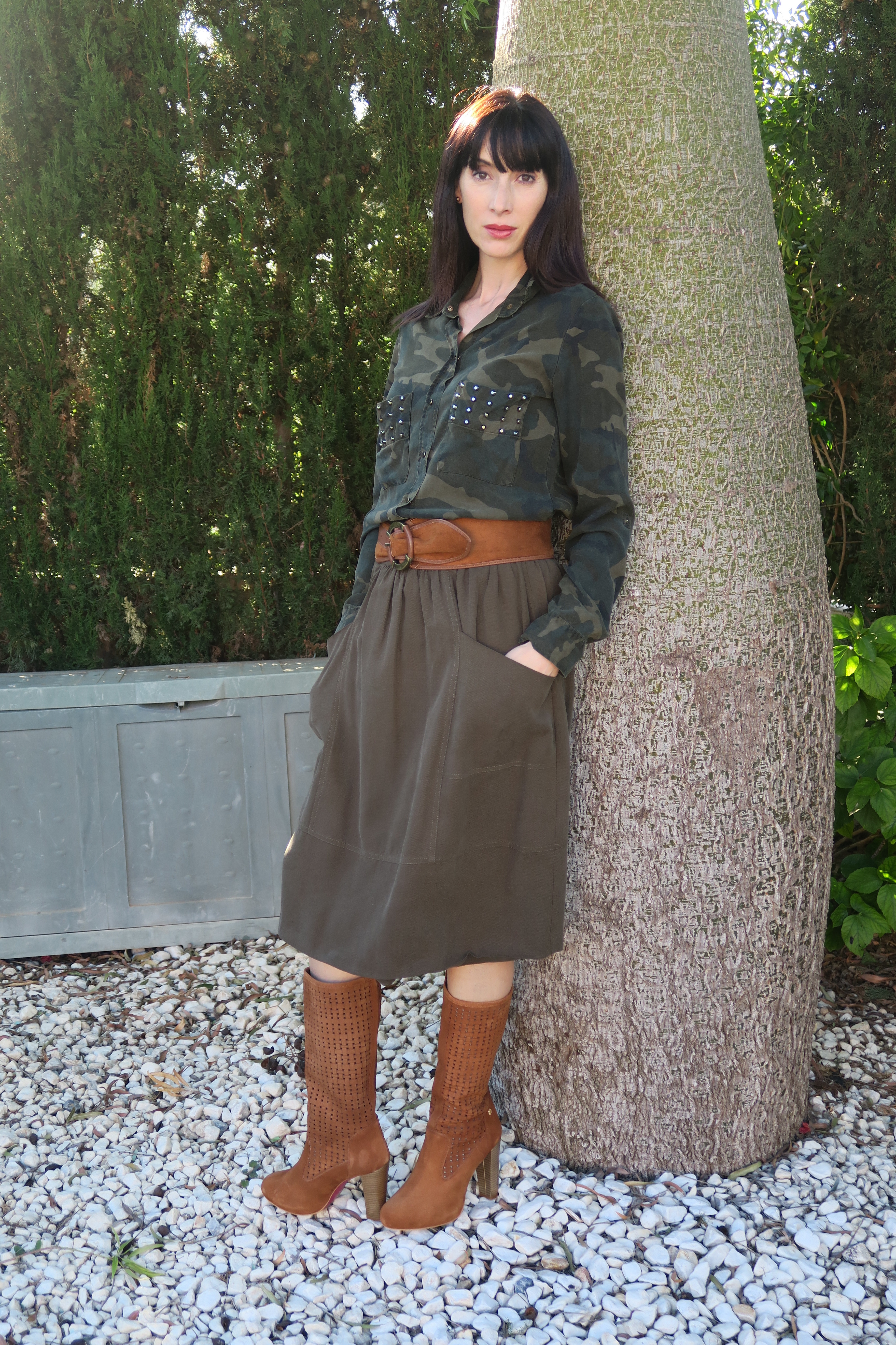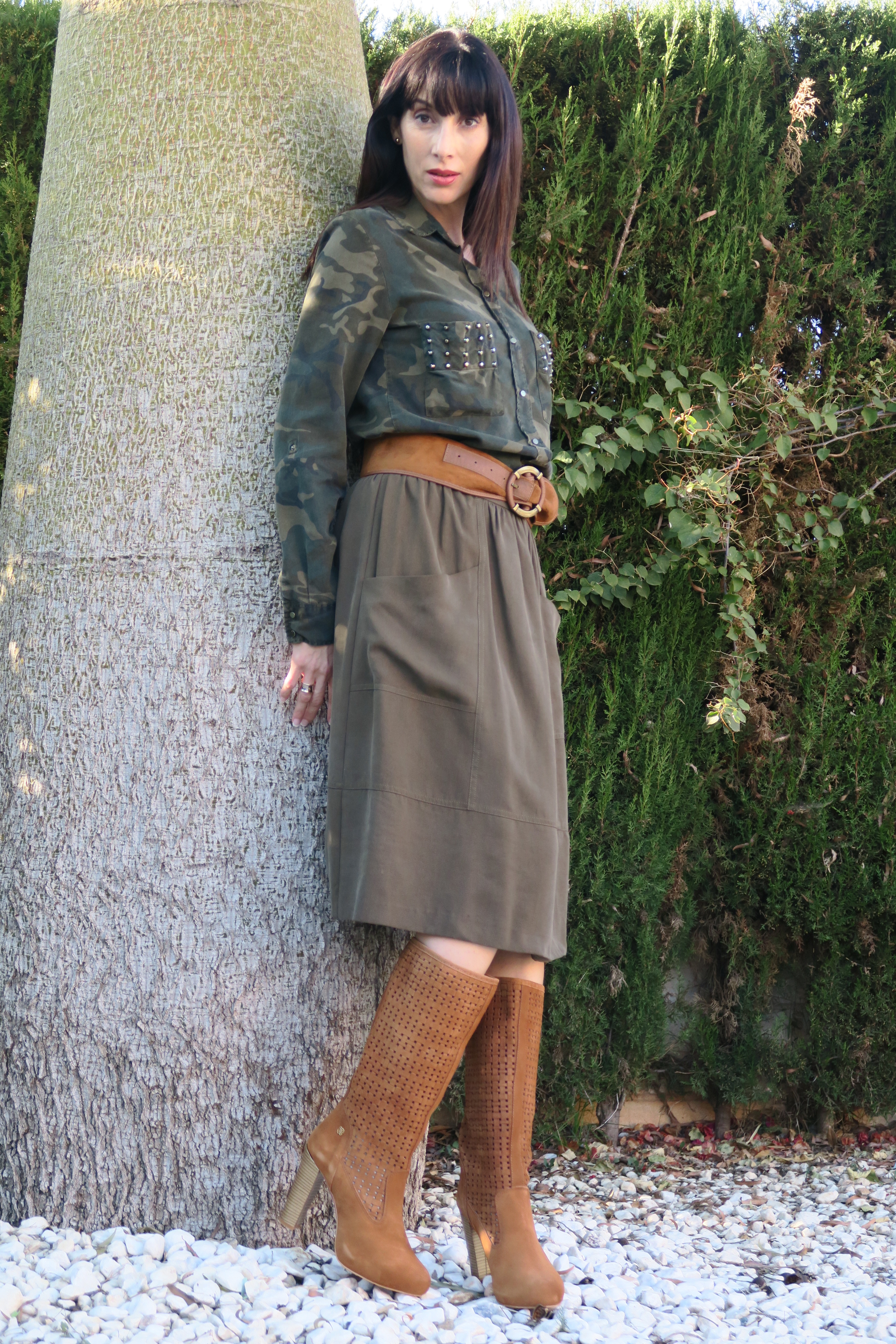 Había usado prendas de este color y tendencia pero nunca a la vez. La falda midi me gusta, en mi caso la puedo usar a diario, las minifaldas me resultan un poco incomodas si debo moverme mucho con los niños.
