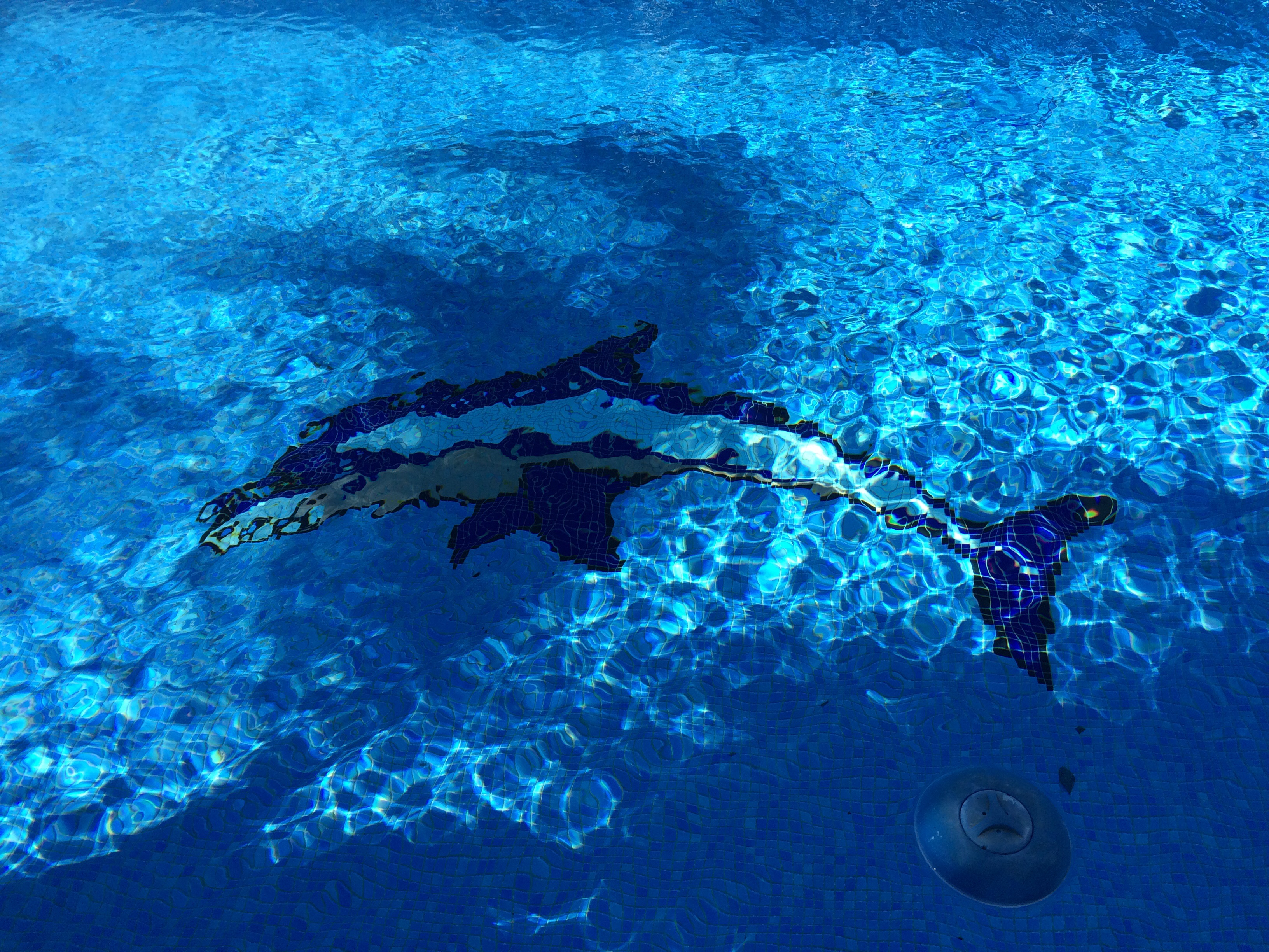 Siempre he querido bañarme con delfines, así que para poder hacerlo todos los días de verano puse uno dentro de la piscina. ¿ tontería? bueno, a mí me hace feliz.