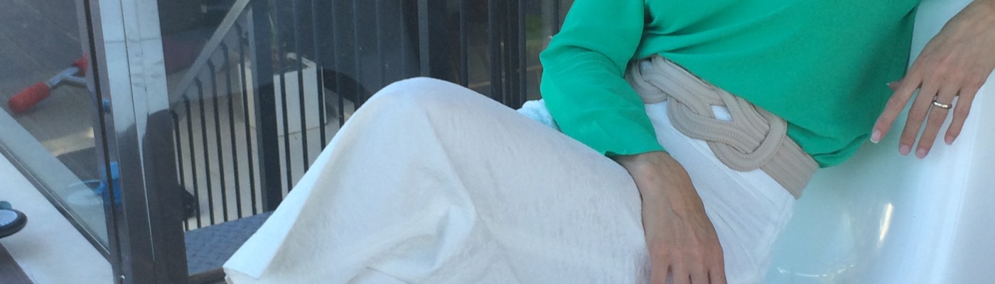 En tiempo de comuniones, bodas y bautizos os traigo una sencilla propuesta para acudir a una comunión. En este caso tenía que acompañar a mi hijo Luca a la ceremonia de su amigo Robin. Así que elegí este look, coulot blanco roto, con un tejido que me parece espectacular, blusa verde, de manga larga pero muy ligera y unas sandalias en el mismo tono de la blusa.