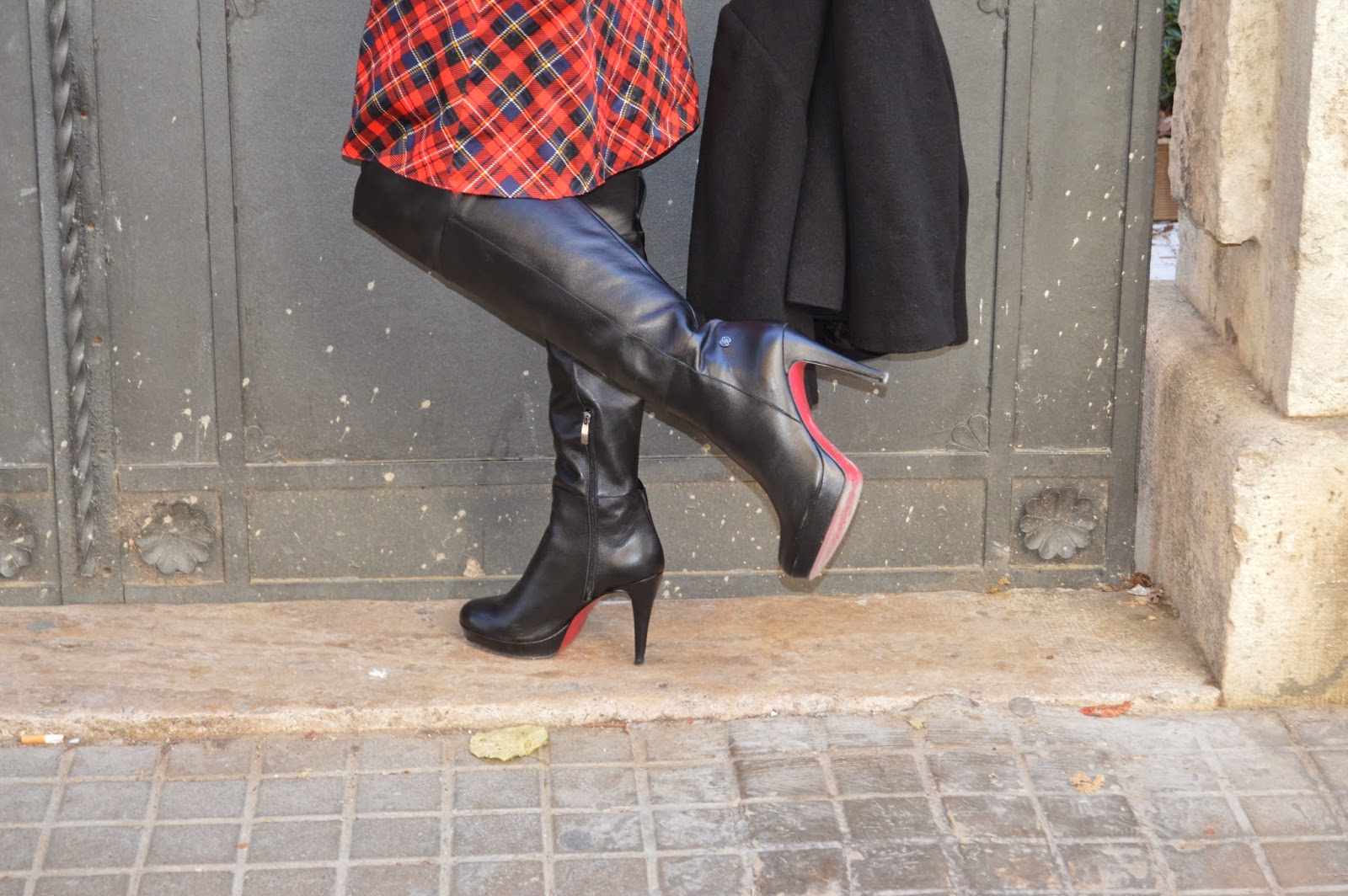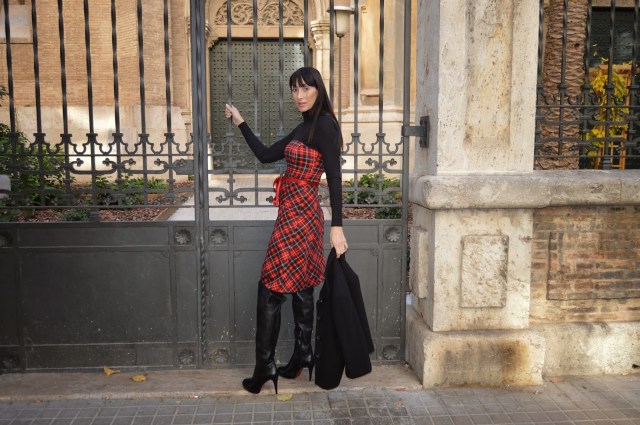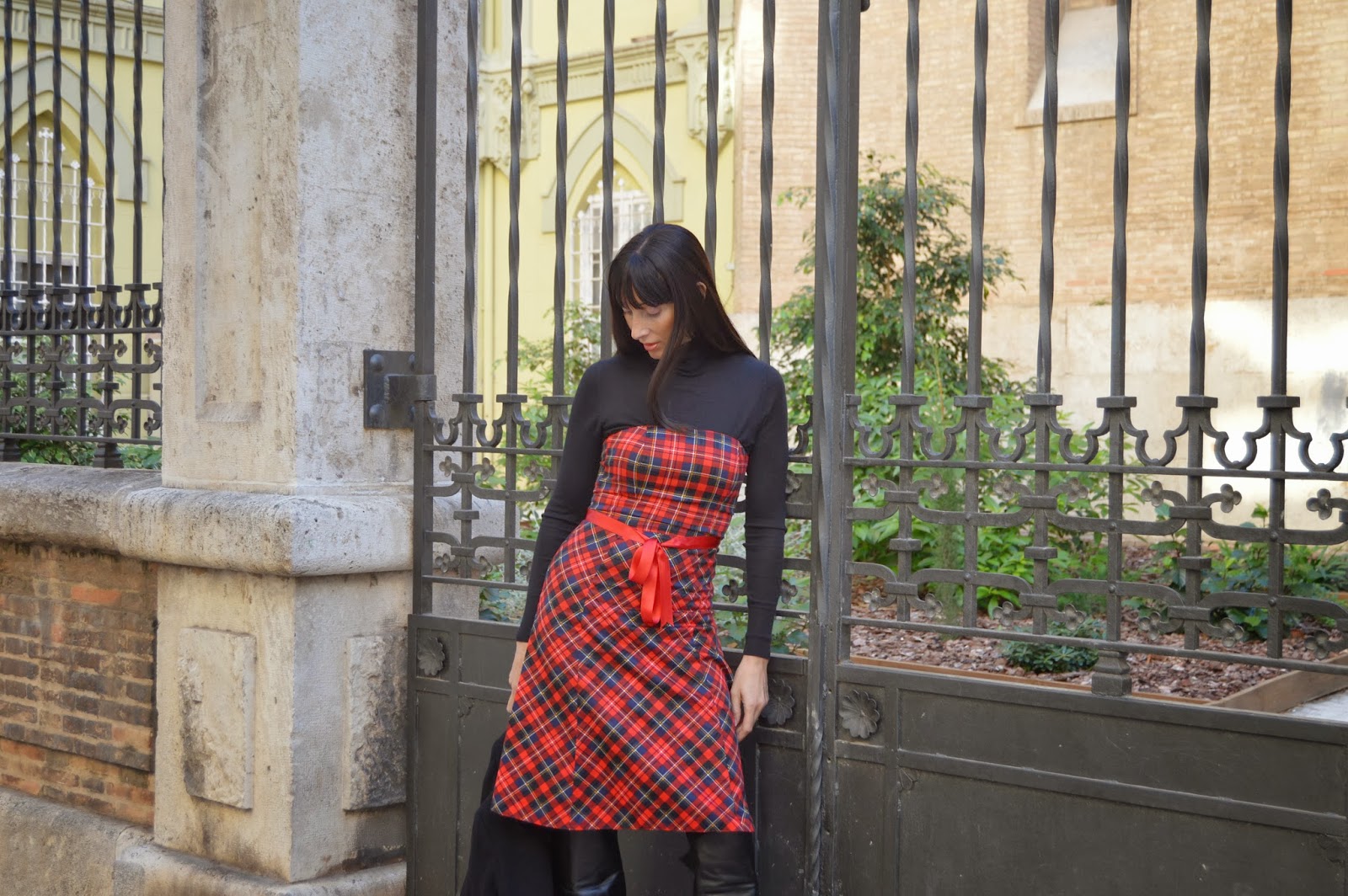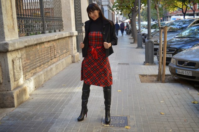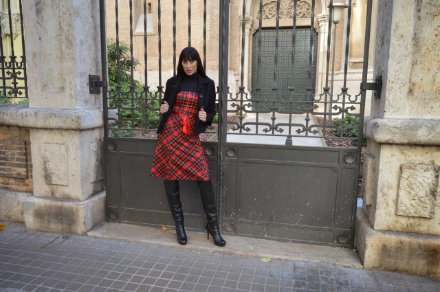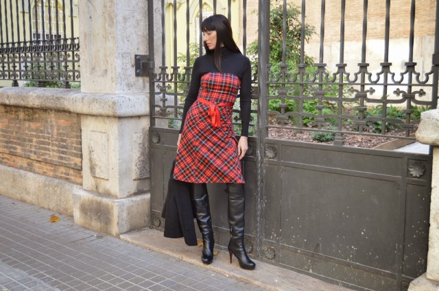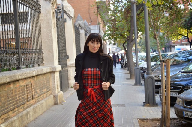 Entonces lo llevé, tal cual, sin medias, sin chaqueta… Sólo vestido, zapatos y bolso, ¡hacía tanto calor!. Unos meses después os traigo la versión invernal del mismo vestido con un suéter negro debajo, medias negras tupidas y botas altas negras.